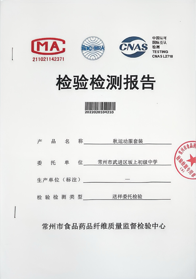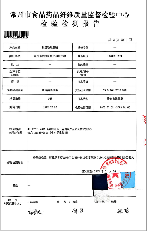 2022年校服检测报告(学校送检)
